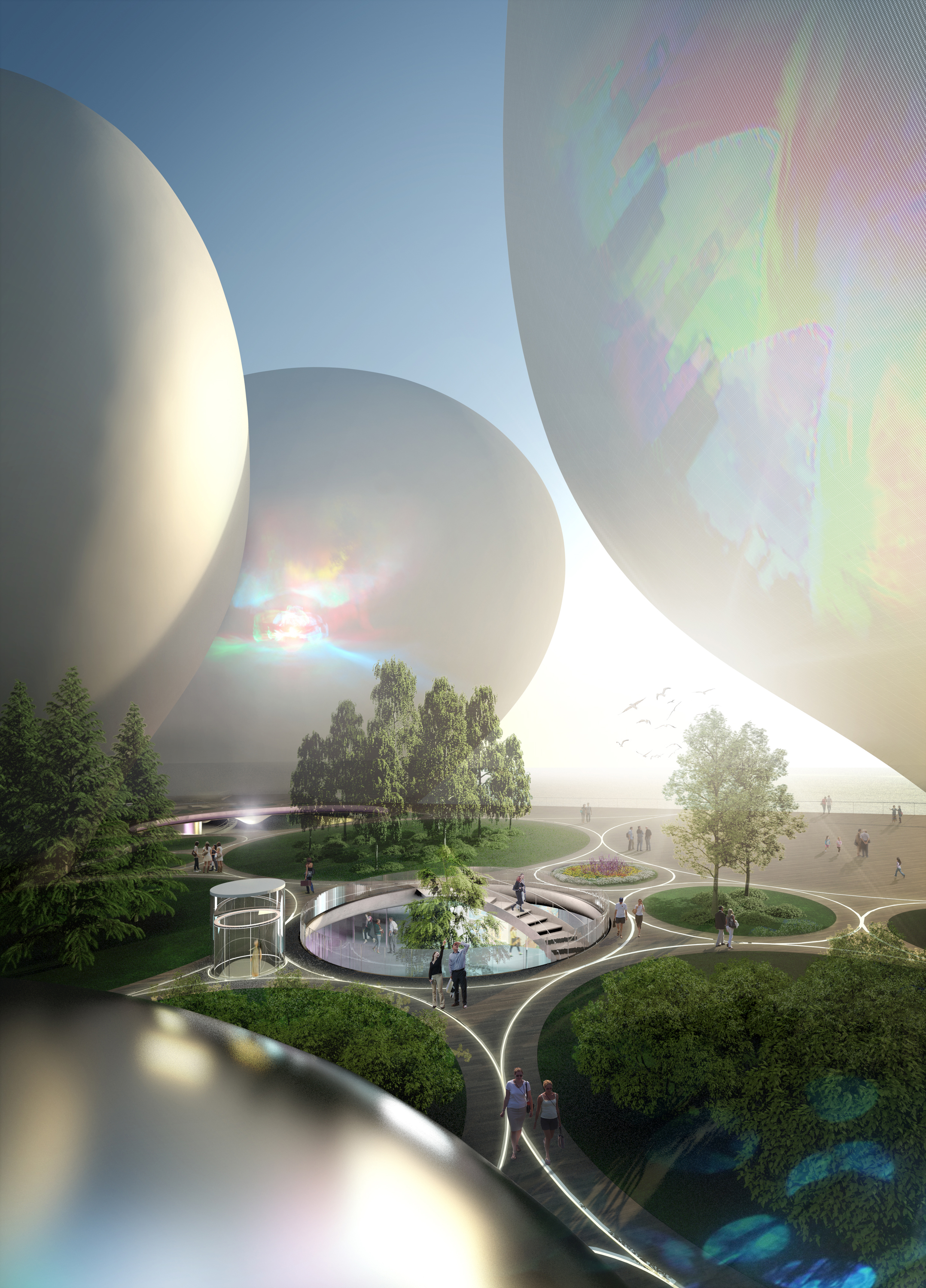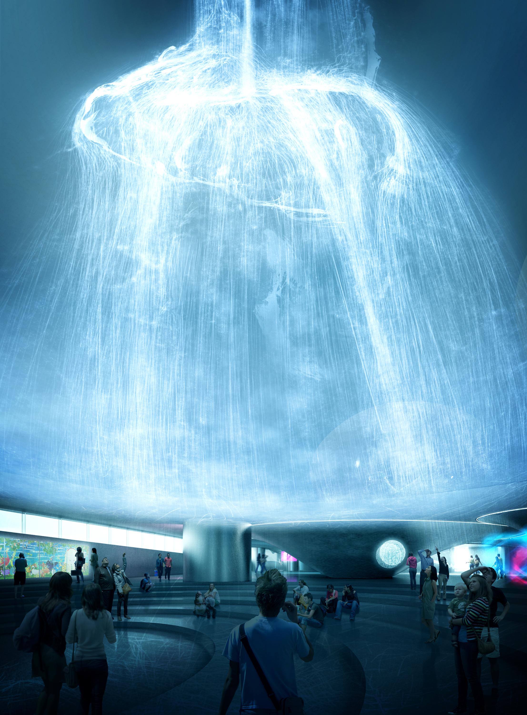 グッケンハイムの美術館の設計コンペティションです。展示室が雲のように浮き上がる、メディアアートなどの最先端のアートが展示される美術館計画となっています。