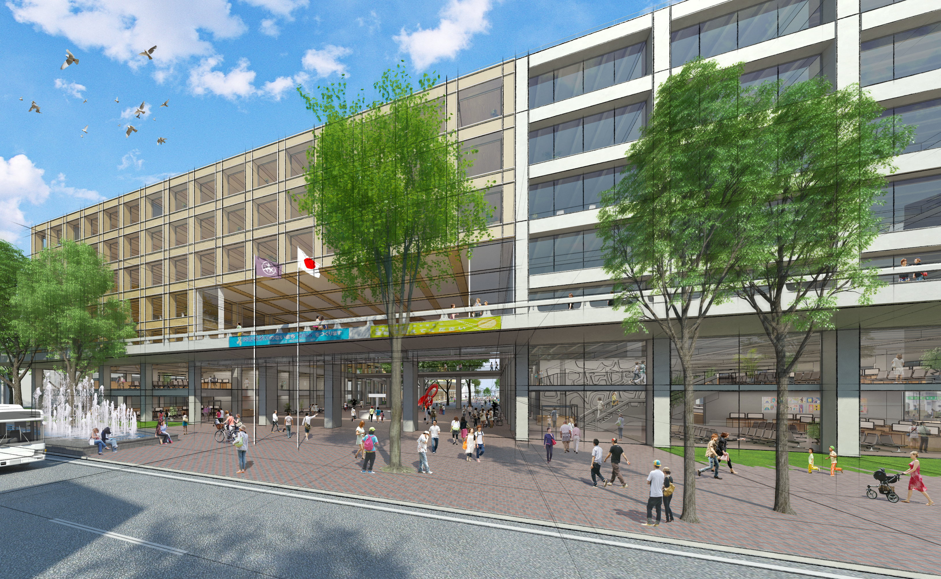 本業務は、前川國男氏設計による既存の世田谷区役所および区民会館の建替計画におけるビジュアル制作です。現状では庁舎機能が複数の建物に分散しており、利用者にとってわかりにくく利便性にも課題があります。今回の計画では、周辺道路の線形を見直すことで、役所機能を一つの建物に集約し、より使いやすく効率的な庁舎を実現することを目指しています。