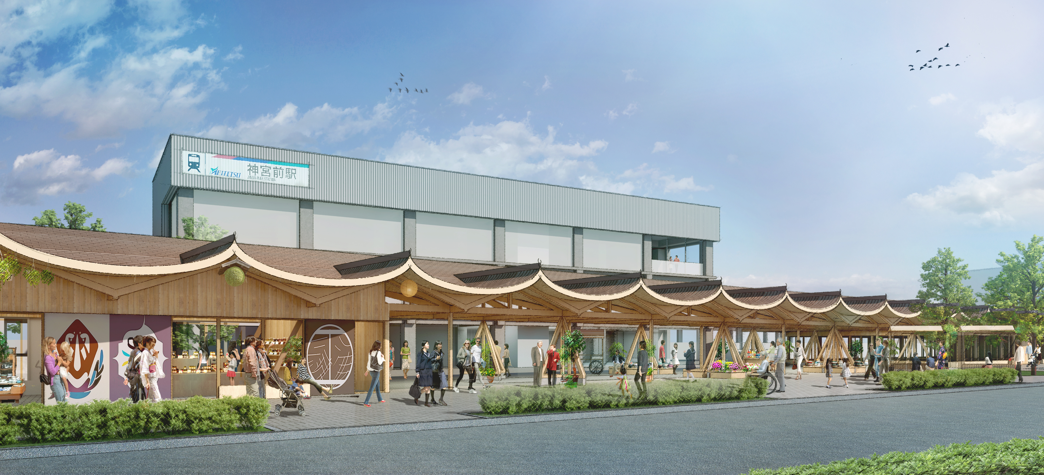 神宮前再開発プロジェクトのPR用のビジュアル制作業務です。場所やモノに込められてきた想いを含めて良さを味わうという意味を込めて「嗜む」という言葉を用い、熱田神宮周辺の緑との連続性を意識した木造かつ愛知県産の木材を用いるなど、地域で継がれる魅力を嗜み再発見できる施設を目指したプロジェクトです。
